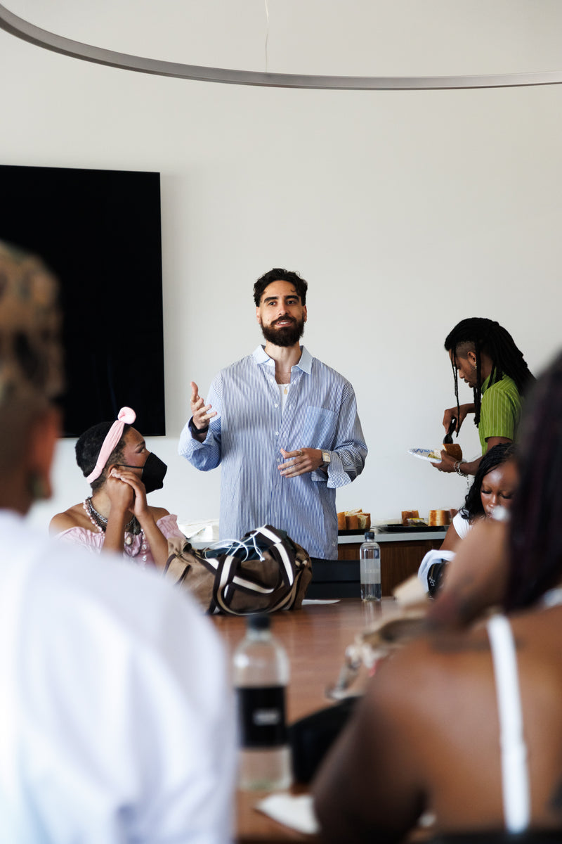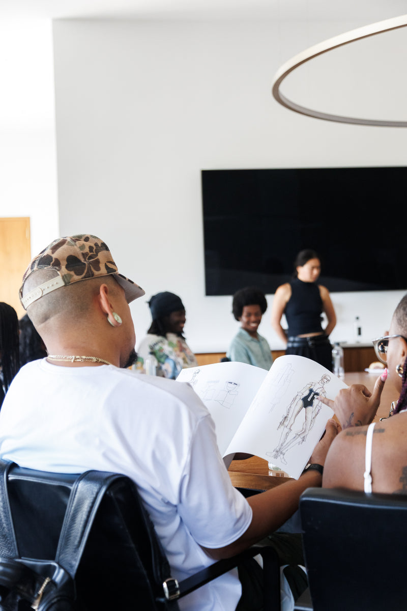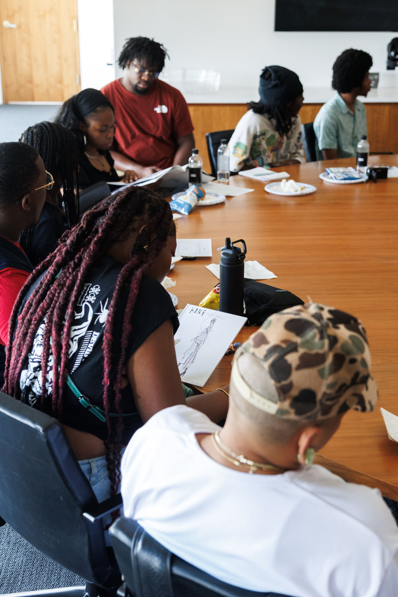 The Black School and Muse 360 brought their youth together for a Behind the Seams workshop at Kith HQ. We hosted 22 student mixed media artists, photographers, curators and designers ages 18 to 25, eager to explore careers in fashion design, understand how fashion functions within a corporate setting, and build meaningful connections.